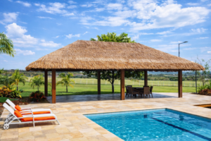 Ter um quiosque de sapê para chácara é a solução ideal para quem busca criar um refúgio de lazer que une conforto térmico e beleza