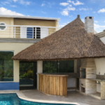 O fechamento, geralmente executado com esquadrias de vidro temperado ou painéis de madeira, oferece uma proteção térmica e acústica eficiente. Isso garante que o ambiente permaneça agradável, facilitando a climatização interna enquanto preserva a estética acolhedora das coberturas tradicionais, como o sapê, a piaçava ou a palha Santa Fé, criando um contraste elegante entre o moderno e o natural.