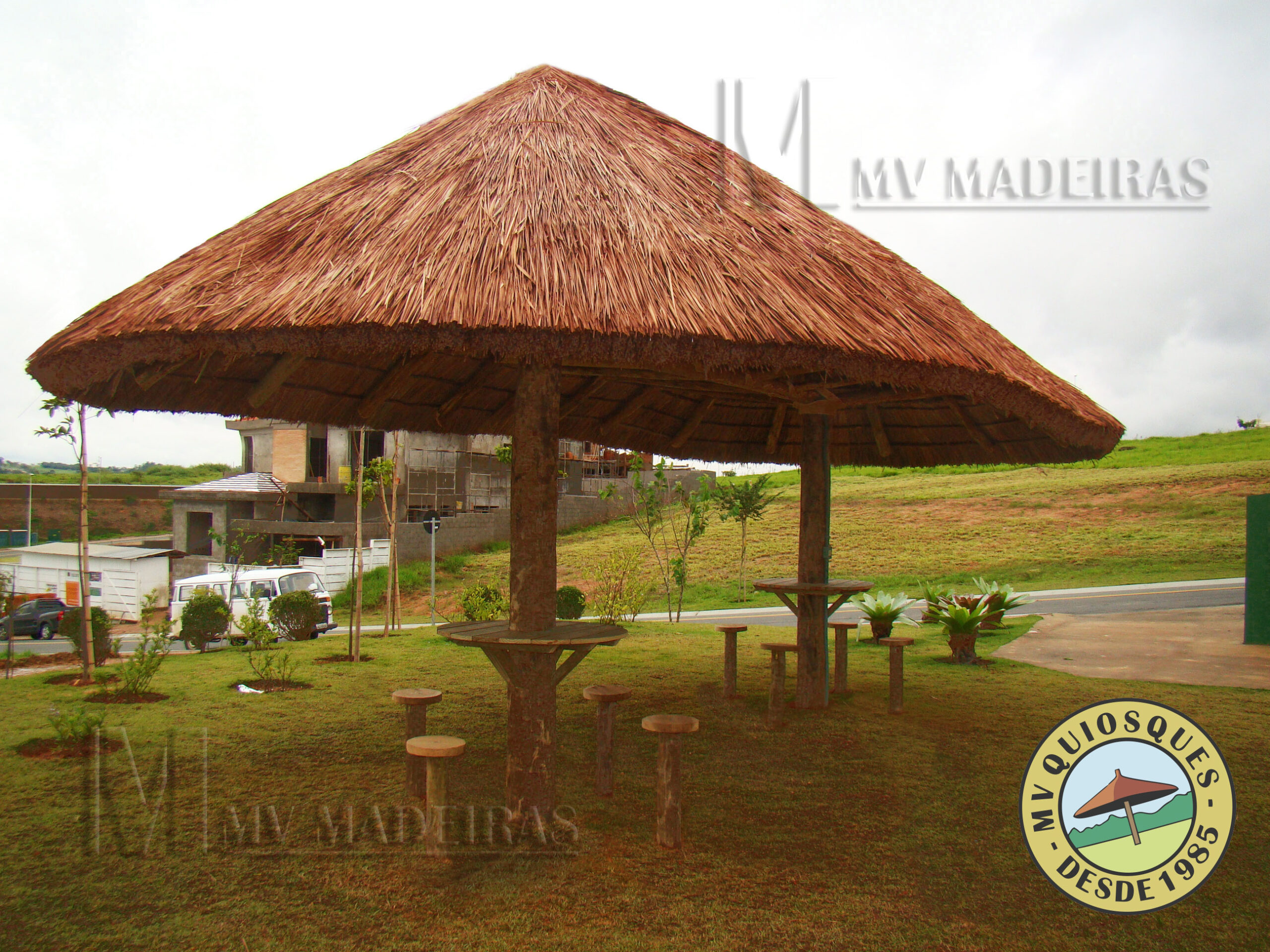 Os quiosques podem ser construídos com madeira roliça natural (Eucalipto tratado em autoclave ) ou madeiras serradas , rústicas e aparelhadas. O sapê é totalmente impermeável desde que a estrutura siga rigorosamente padrões técnicos para tal finalidade. Estruturas metálicas também podem ser cobertas com sapê.