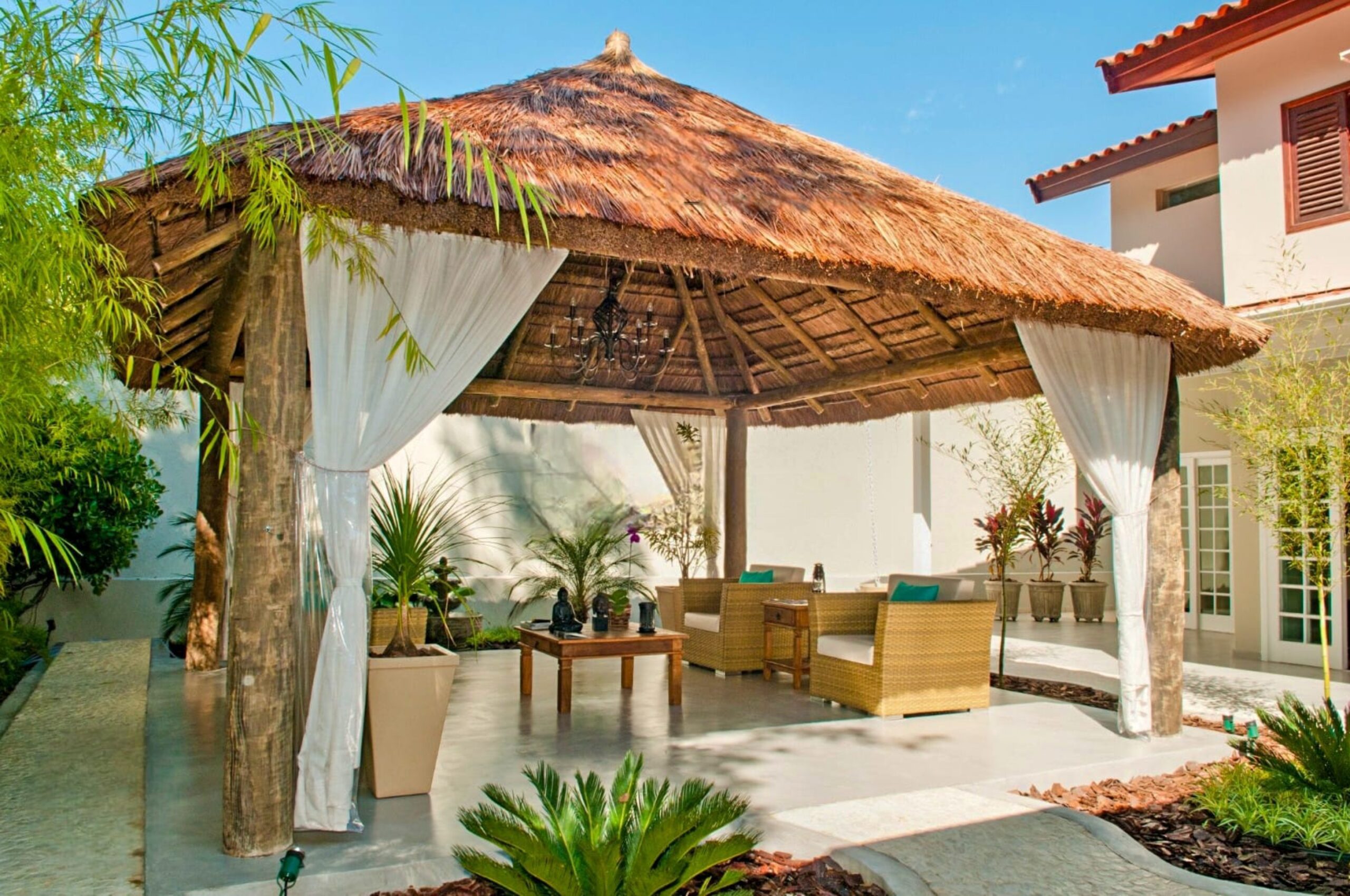 Além da estética excepcional, nossos quiosques de sapê são projetados para proporcionar multifuncionalidades, com opções de personalização que incluem bancadas, pisos decks de madeira, além da integração do quiosque com churrasqueira, que permitem ter uma área gourmet completa, seja para espaços compactos para encontros mais intimistas ou estrutura mais ampla para eventos sociais. Devido suas excelentes propriedades, o sapê elimina necessidade de manutenções, permitindo que você desfrute de seu quiosque sem preocupações.